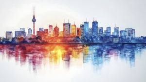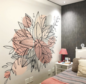 A vibrant Japanese-inspired mural for a modern sushi restaurant.